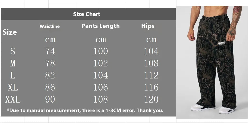 These camouflage printing straight-leg trousers are designed for both comfort and a rugged, outdoorsy look. Made from a chemical fiber blend, primarily polyester, they offer durability and a lightweight feel.